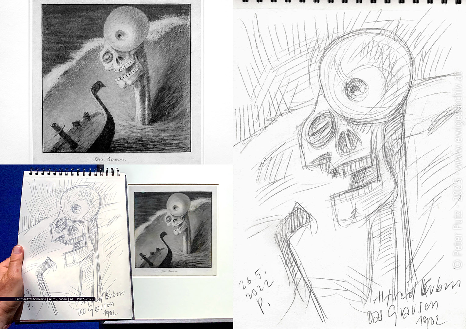 I made the sketch based on the drawing ‘Das Grauen’ (The Horror) by Alfred Kubin on 26 May 2022 at the Leopold Museum during the extensive exhibition on Alfred Kubin.