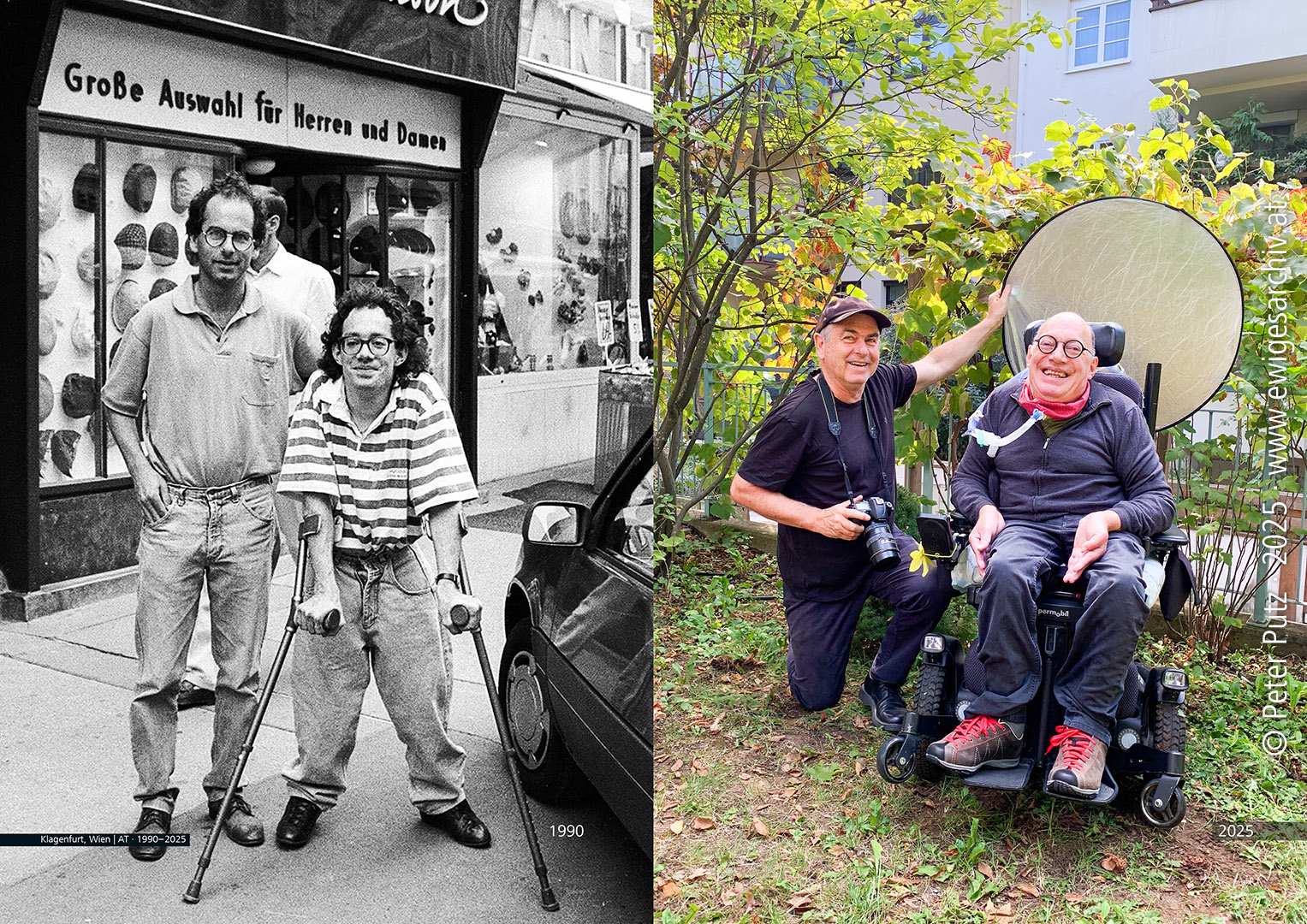 The black-and-white photo of Franz-Joseph Huainigg and me is from the book Wenn ich nicht wäre, wie ich bin (If I weren’t who I am), published in 1991. The photo on the right was taken a few days ago.