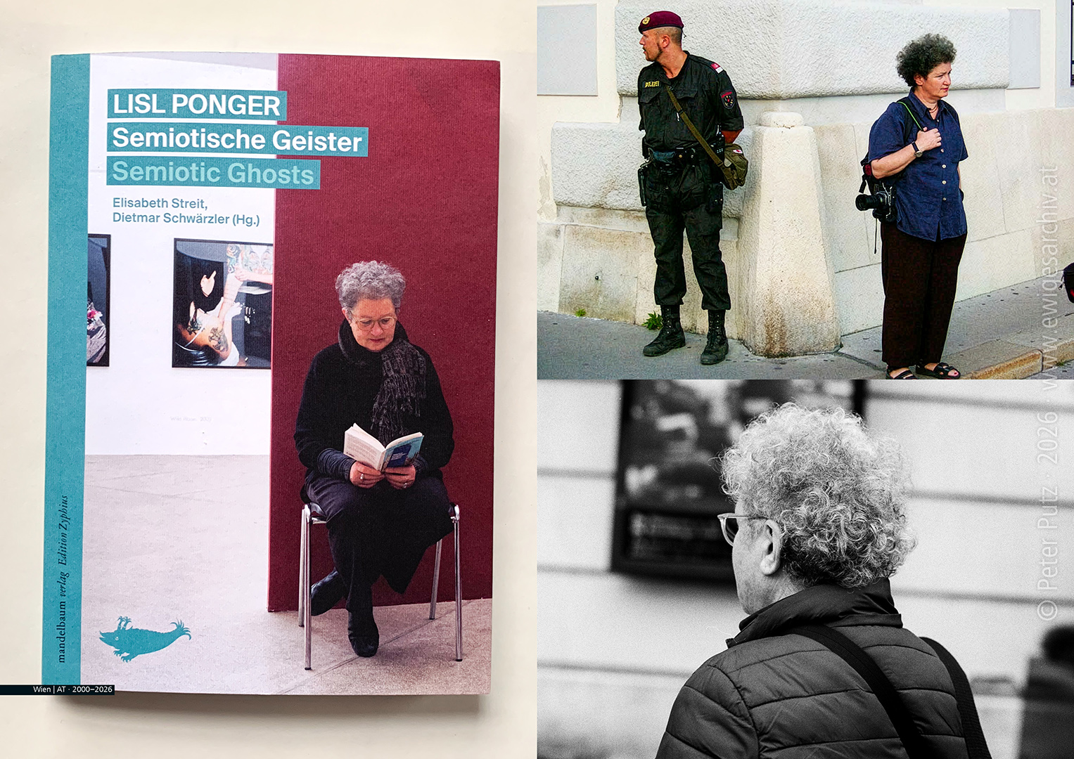 Neuerscheinung: Lisl Ponger. Semiotische Geister / Semiotic Ghosts. Wien | AT · 2000–2025 (© PP · # 3720 · www.ewigesarchiv.at) In einer Zusammenarbeit des Österreichischen Filmmuseums mit dem Wiener Mandelbaum Verlag ist ein sehr informatives und ausgezeichnet gestaltetes Buch über die Arbeit der Fotografin und Filmemacherin Lisl Ponger erschienen: „Lisl Ponger gehört zu den unverwechselbaren Stimmen der österreichischen Gegenwartskunst. In ihren Werken werden kulturelle Stereotypen demontiert und Wirkmächtigkeiten von Bildern über andere hinterfragt. Im Laufe ihrer jahrzehntelangen konsequenten Arbeit mit Fotografie, Film und Installation hat die Künstlerin eine charakteristische "Pongersche Perspektive" auf die Welt entwickelt.