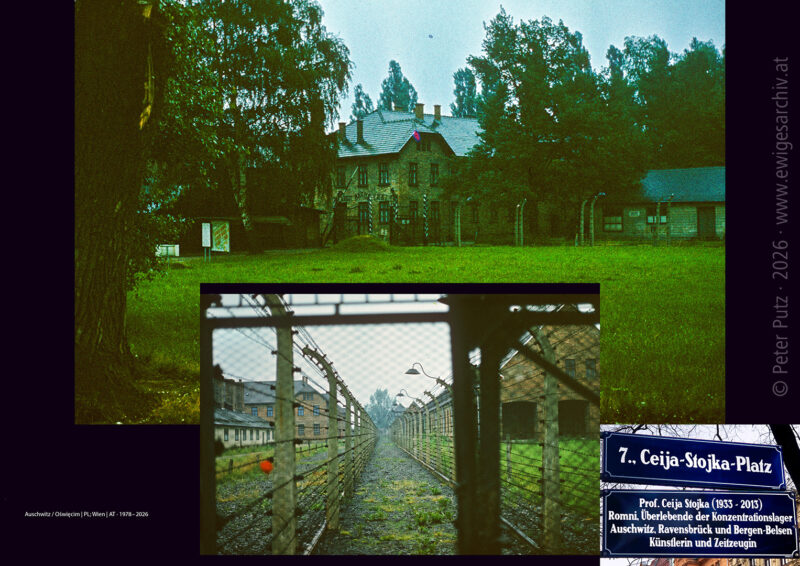 Zwei Fotos von einem Besuch des KZ Auschwitz / Oświęcim · Two photographs from a visit to Auschwitz/Oświęcim concentration camp