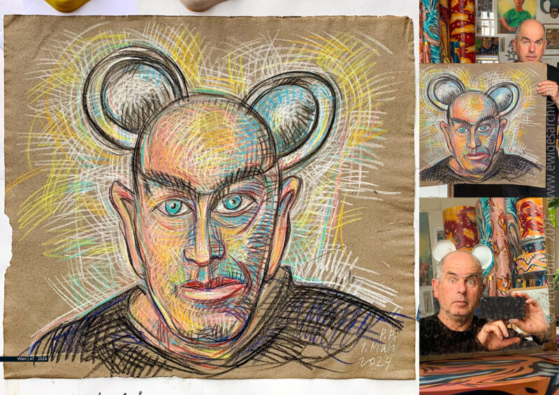 Selbstportrait mit Mickey-Mouse-Ohren · Self-portrait with Mickey Mouse ears