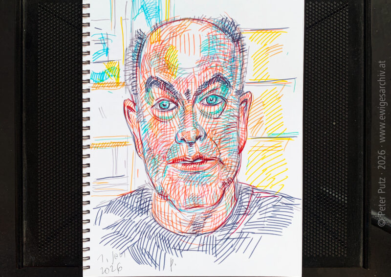 Selbstportrait mit Filzstiften · Self-portrait with felt-tip pens
