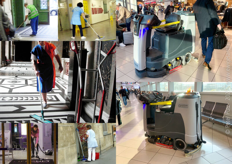 Mobil-Klos: Transport und Reinigung · Mobile toilets: transport and cleaning